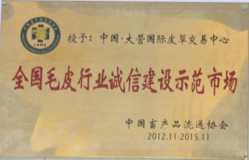 中国·大营国际皮草生意中心荣获 天下皮毛行业诚信建设树模市场
