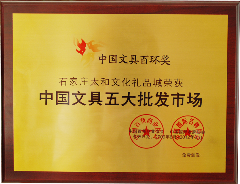 永利304官网唯一文化礼物城荣获 中国文具五大批发市场