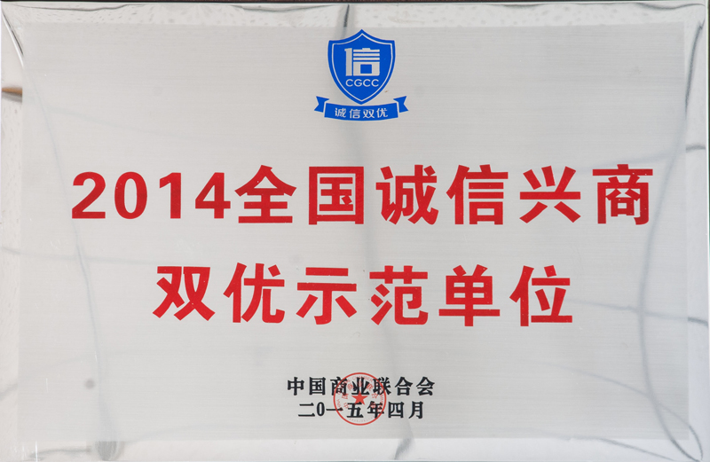 永利304官网唯一文化礼物城荣获 2014天下诚信兴商双优树模单位