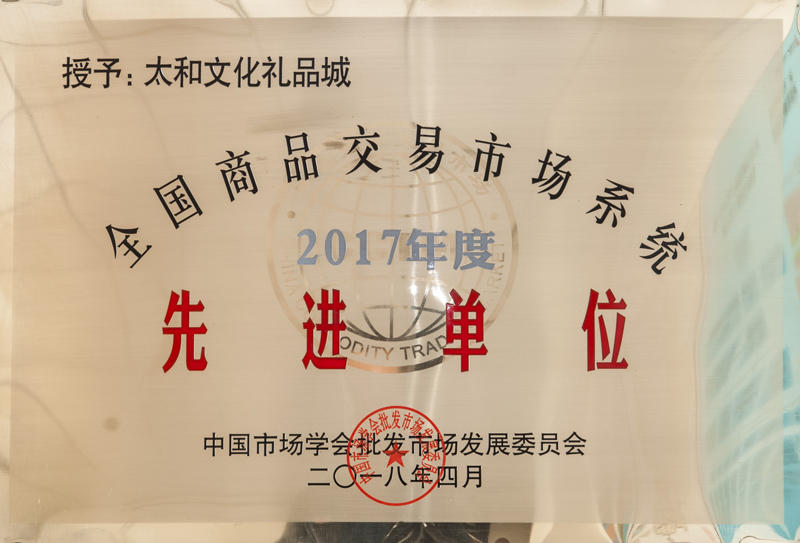 永利304官网唯一文化礼物城荣获 2017年度天下商品生意市场会员先进单位