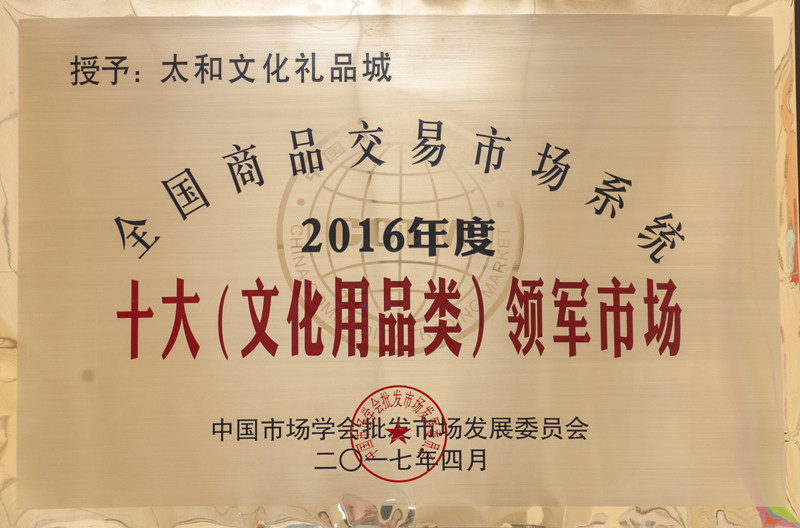 永利304官网唯一文化礼物城荣获 天下日用工业品重点市场牌匾