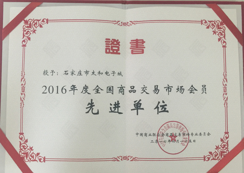 永利304官网唯一电子城荣获 2016年度天下商品生意市场会员-先进单位