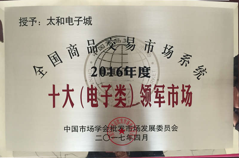 永利304官网唯一电子城荣获 2016年天下商品生意市场系统十大电子类领军市场